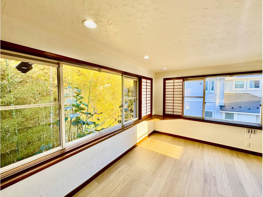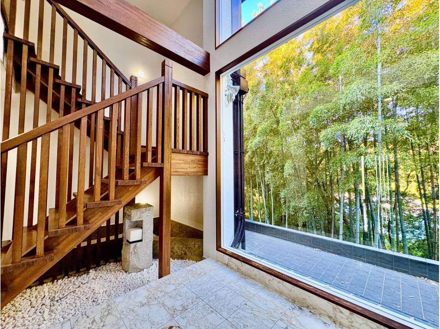 敷地133坪超、自然豊かな鎌倉にある大型中古戸建て。借景の竹林が美しく、2世帯にも対応可能。電動シャッター付きガレージ2台分も魅力です!