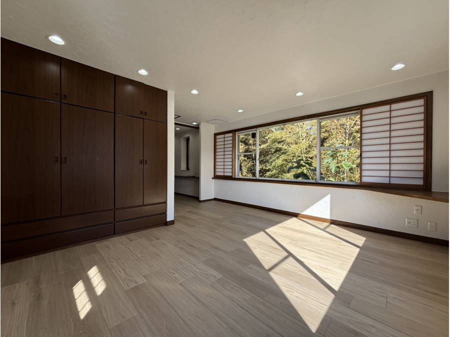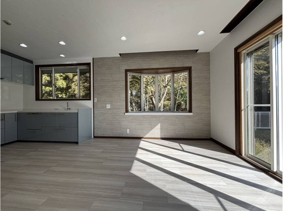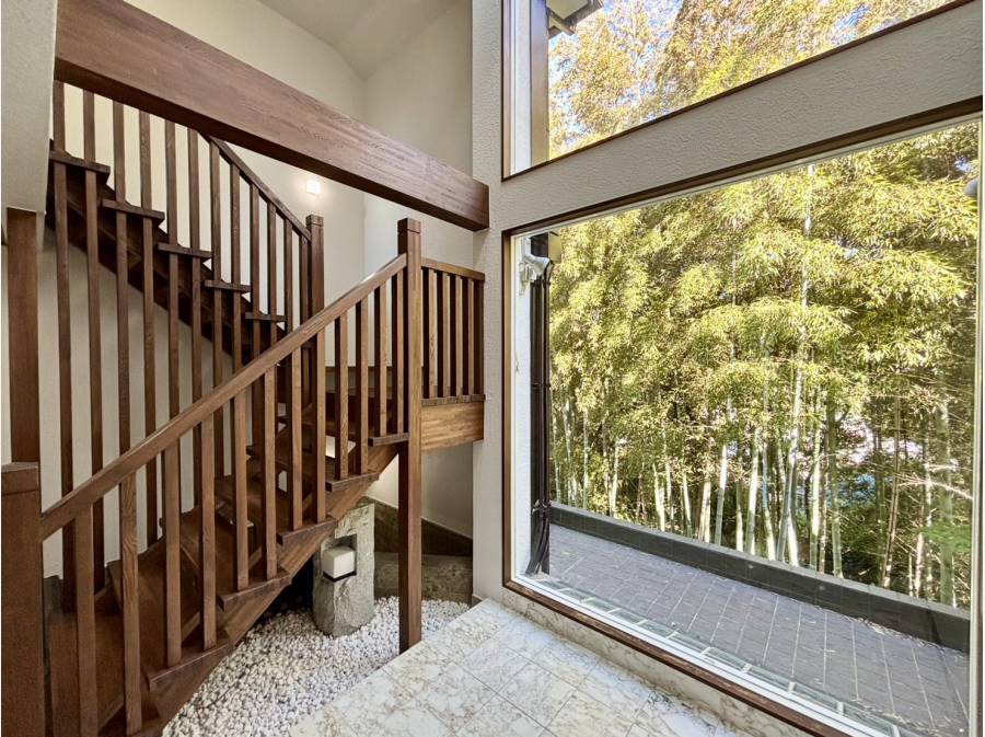 窓の外には緑が広がり、四季折々の景色を日々楽しめます。その静けさと開放感は、まるで別荘にいるような特別な空間を演出します。