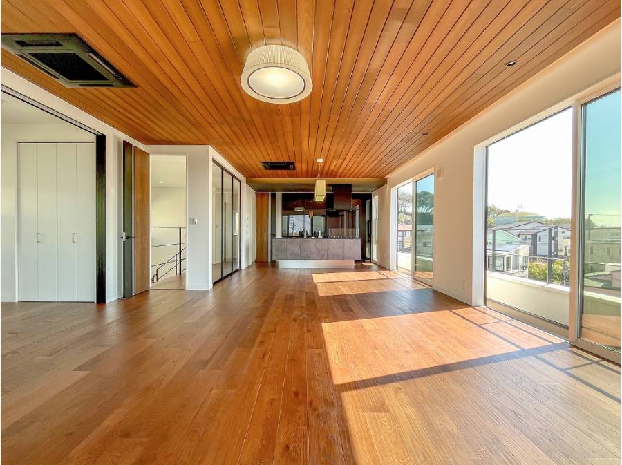 30帖超という広さのLDKはたくさんの窓に囲まれ、セカンドリビングとしても活用できそうな開放感あふれるバルコニーと繋がります。