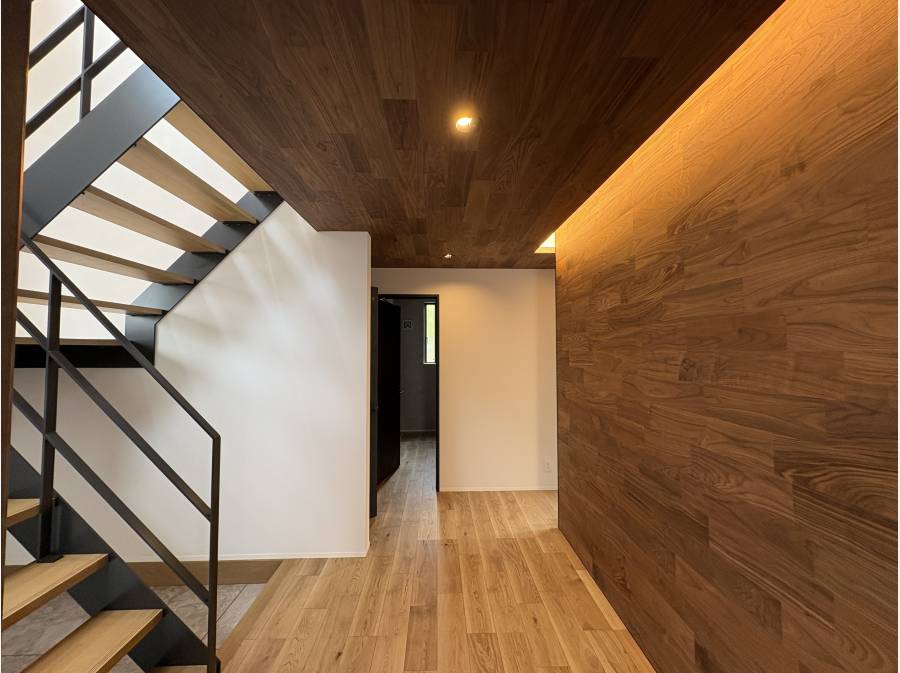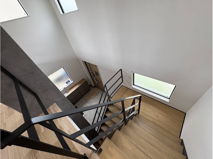 約10帖の広々とした玄関ホールからスケルトン階段を上ると、約30帖の開放感あふれるLDKが広がります。