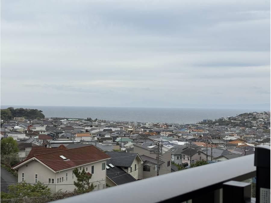 鎌倉市街と相模湾を望む緑豊かな邸宅。広々とした2階リビングや1階洋間から海を堪能できます。