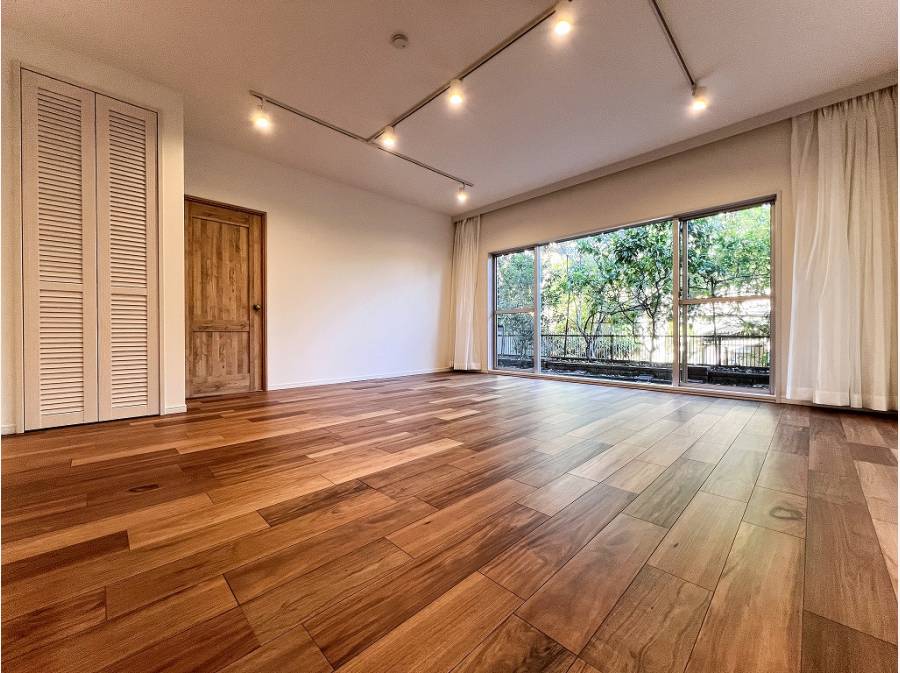 南東向きのリビングの先には心地よいお庭が寄り添い、絵になる借景を堪能できます。