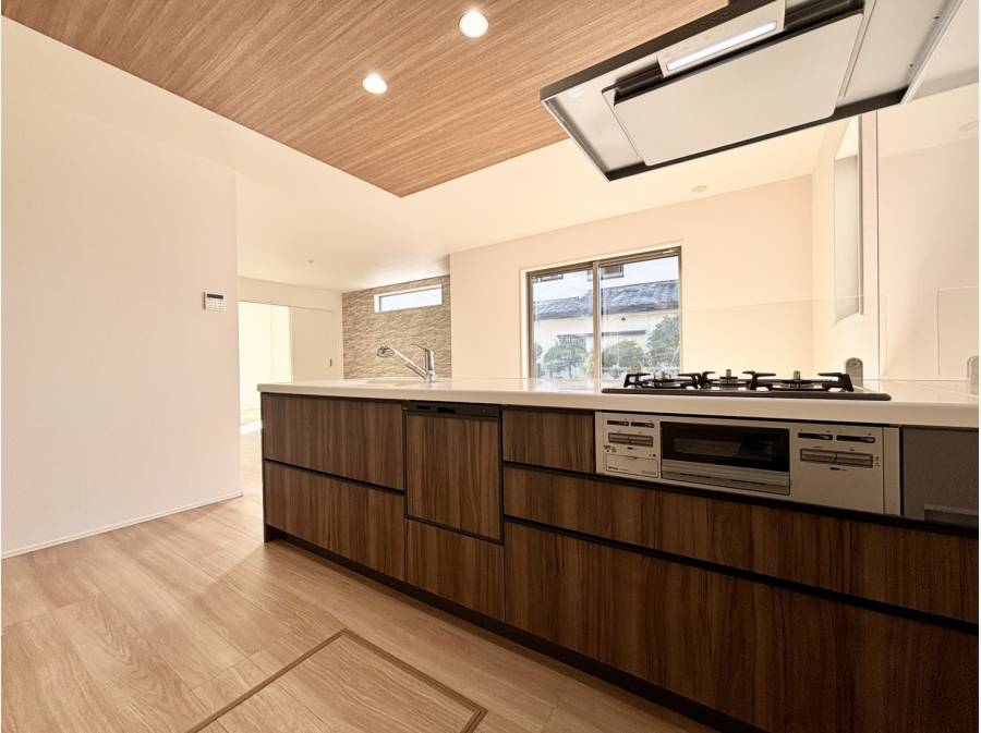 キッチンは動きやすさを重視した配置で、家事が楽しくなる工夫が施されています。また、2階の居室はそれぞれが静かに過ごせる設計で、家族のライフスタイルに寄り添っています。