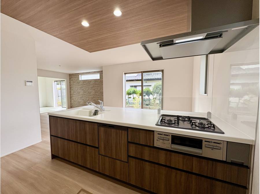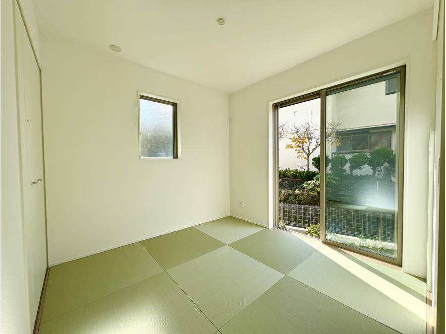 敷地内にはお庭スペースがあり、ガーデニングやお子さまの遊び場、バーベキューなど多彩な楽しみ方が可能。さらに、カースペースは大型車対応で2台分あり、ご家族や来客にも安心です。