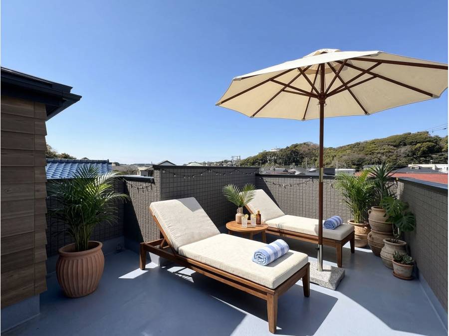 スカイバルコニーから江ノ島を望む~『腰越ガーデンハウス』~「西鎌倉」駅徒歩6分