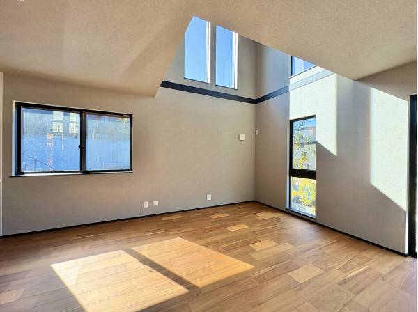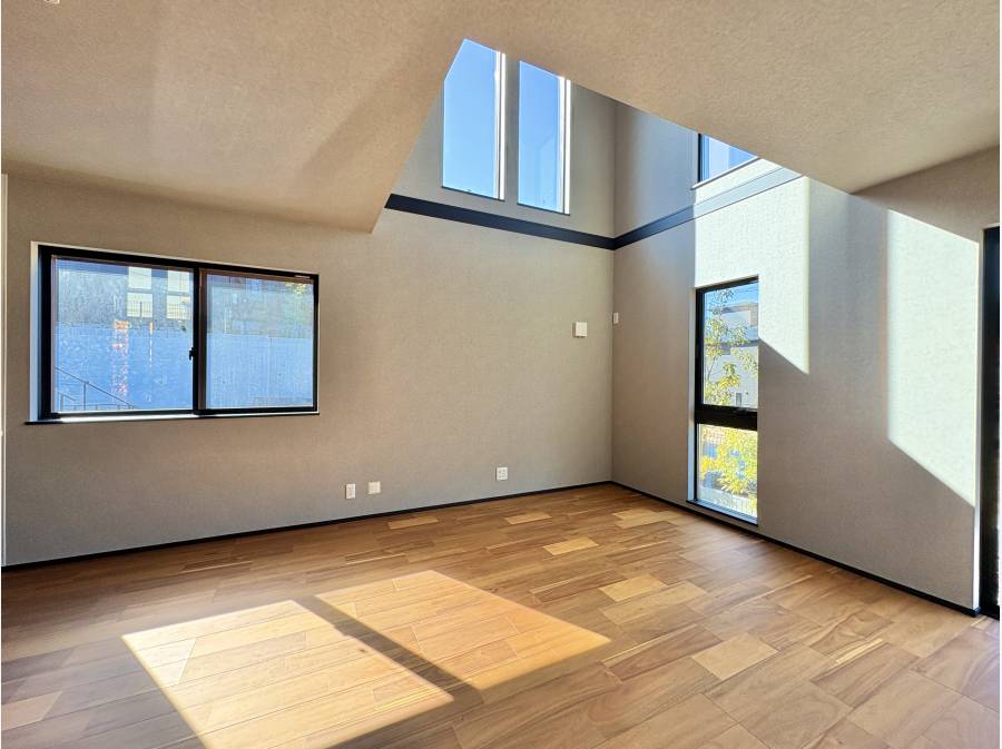 室内には吹き抜けがあり、開放感あふれる空間が広がります。