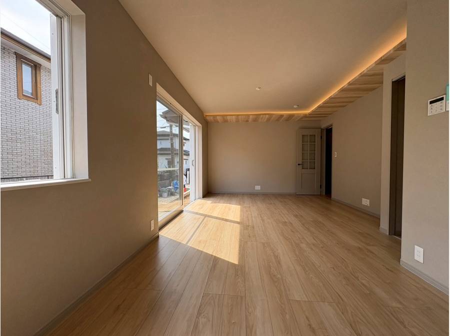 17.5帖の広々としたLDKには吹き抜けがあり、開放感を感じられる設計。カースペースは2台分が確保されており、ゆとりある暮らしをご提案します。