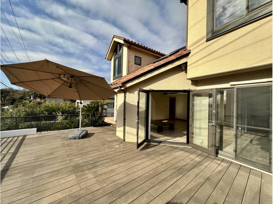 七里ガ浜の大型ガレージハウス。約33帖のLDKや広々ウッドデッキ、防音室を備えたこだわりの注文住宅です☆