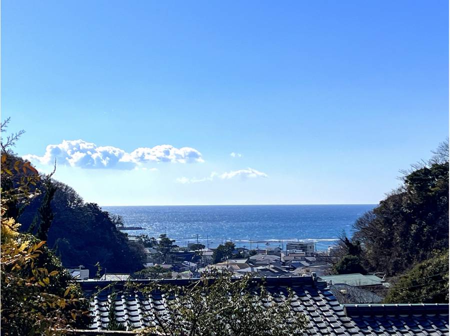 現在は草木が茂っていますが、建物の高さによっては絵に描いたような湘南の海と江ノ島、そしてお天気の良い日には正面に富士山を望むことも叶う壮大な景色が広がります。