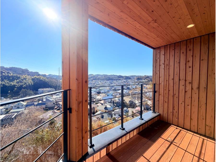 バルコニーから四季折々の鎌倉の街並みを楽しめる邸宅。デザイン性と暮らしやすさが魅力です。