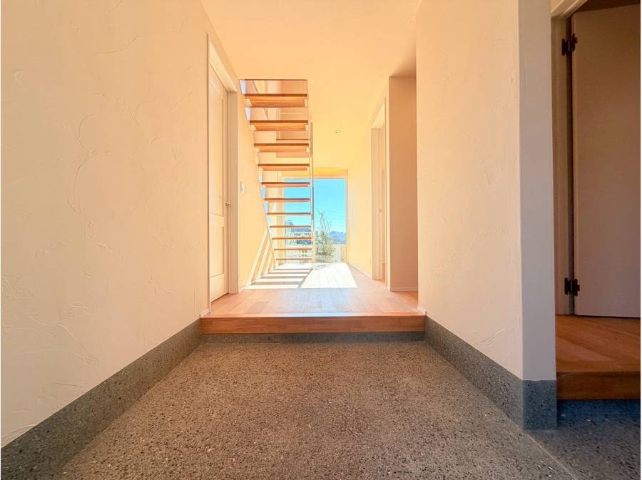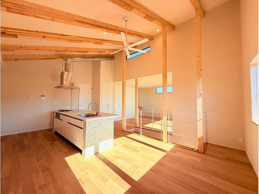 室内には、アイランドキッチンや大容量収納のあるエントランスなど、暮らしやすさを考えた工夫が盛り込まれています。