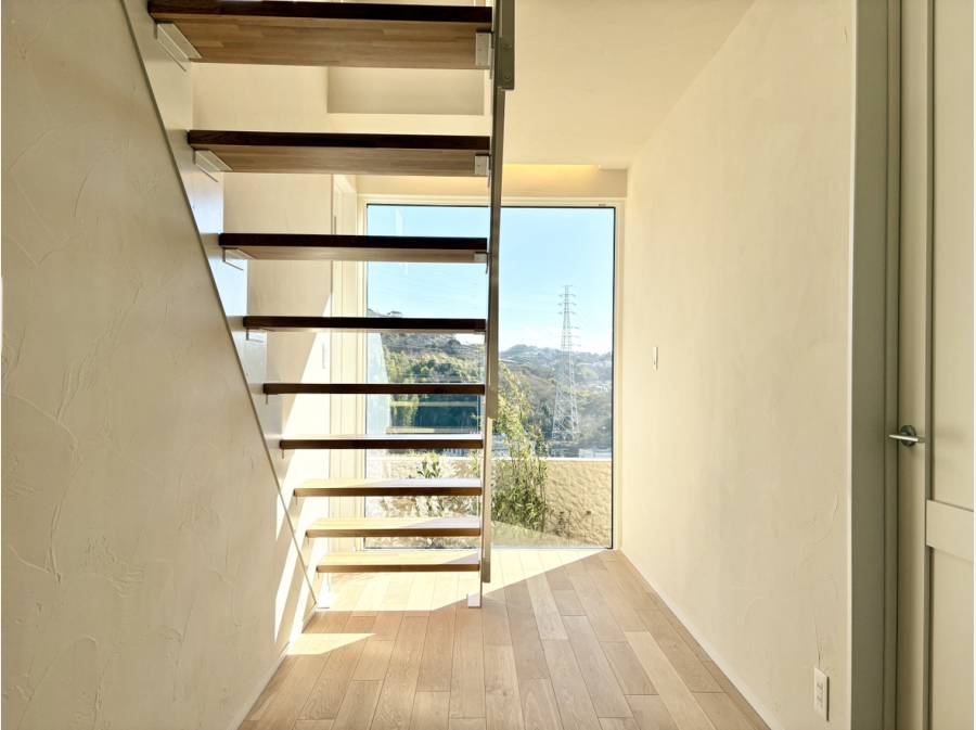 LDKを2階に配置することで、鎌倉・梶原の街並みを一段高い視点から楽しめる、抜け感のある眺望が広がります