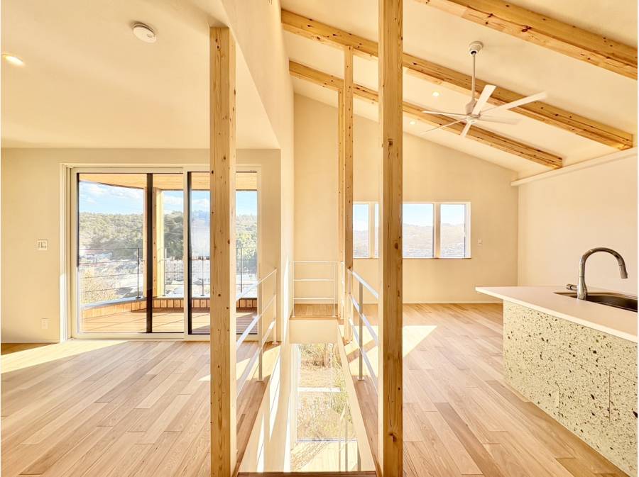 空間を遮らないアイランドキッチン、勾配天井で優雅に回るシーリングファン、鎌倉の景色を望むバルコニー…魅力がたくさん詰まったお住まい