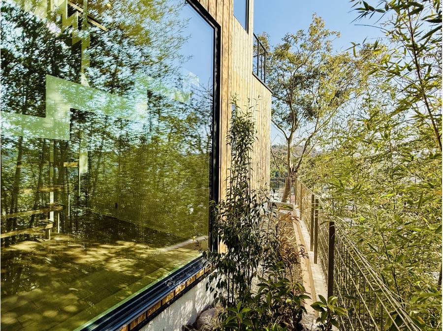 竹林を望む景色、無垢の床と屋久島杉が香る自然素材の邸宅
