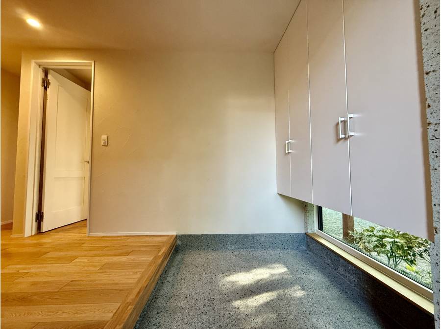外観には「屋久島地杉」を使用し、温かみのあるウッディースタイルを採用。室内にも大谷石や塗り壁、無垢の床材といった自然素材がふんだんに使われています。