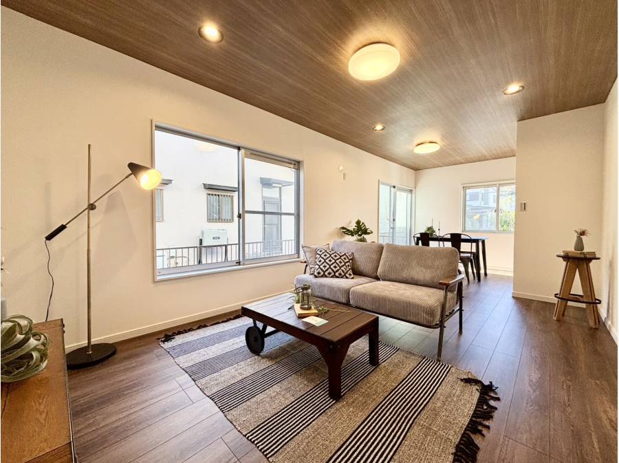 現代の暮らしに合わせてフルリフォームされた、再生住宅のご案内です。間取りは3SLDK。全居室が南向きで、どのお部屋にも自然光が柔らかく差し込み、時間の移ろいとともに変化する心地よい空間をお楽しみいただけます。