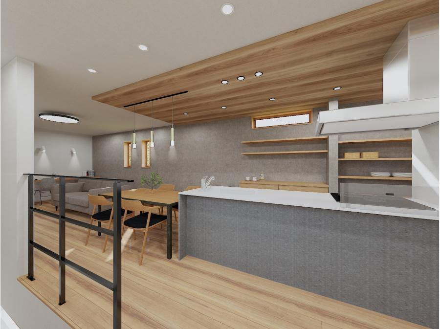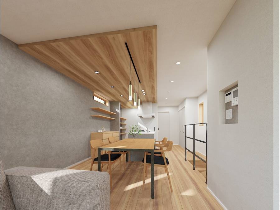 リビングに寄り添う横並びのダイニングスペースは、暮らしの動線を軽やかにし、豊かな団欒風景を想像させてくれます。