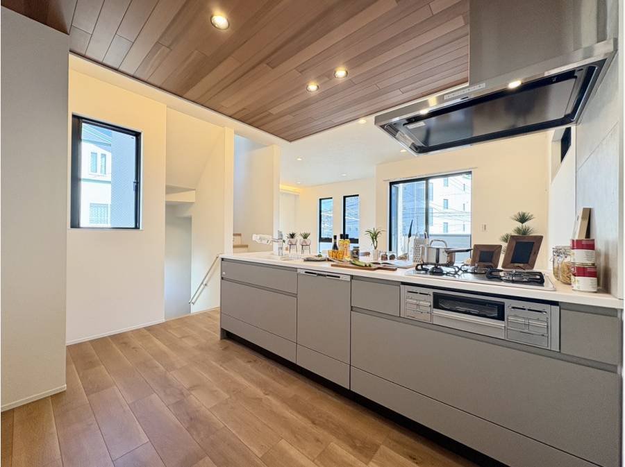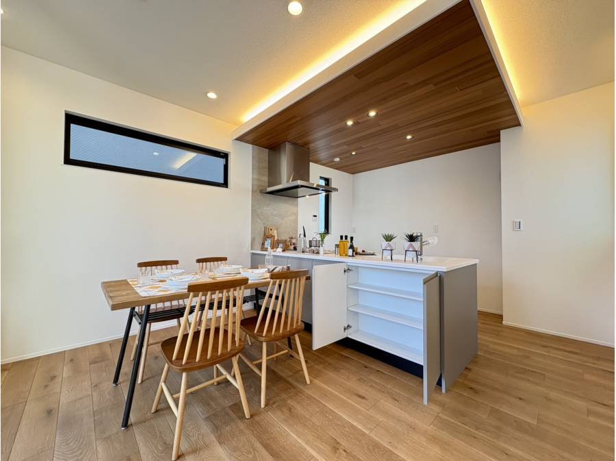 床材やキッチン天井部分、玄関壁面部分などに天然木を使用した、木のぬくもりを感じられるお住まいです♪