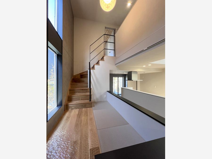 2階までの動線上には小上がりスペースやロフトが隣接し、遊び心ある余白が日常にゆとりを与えます。
