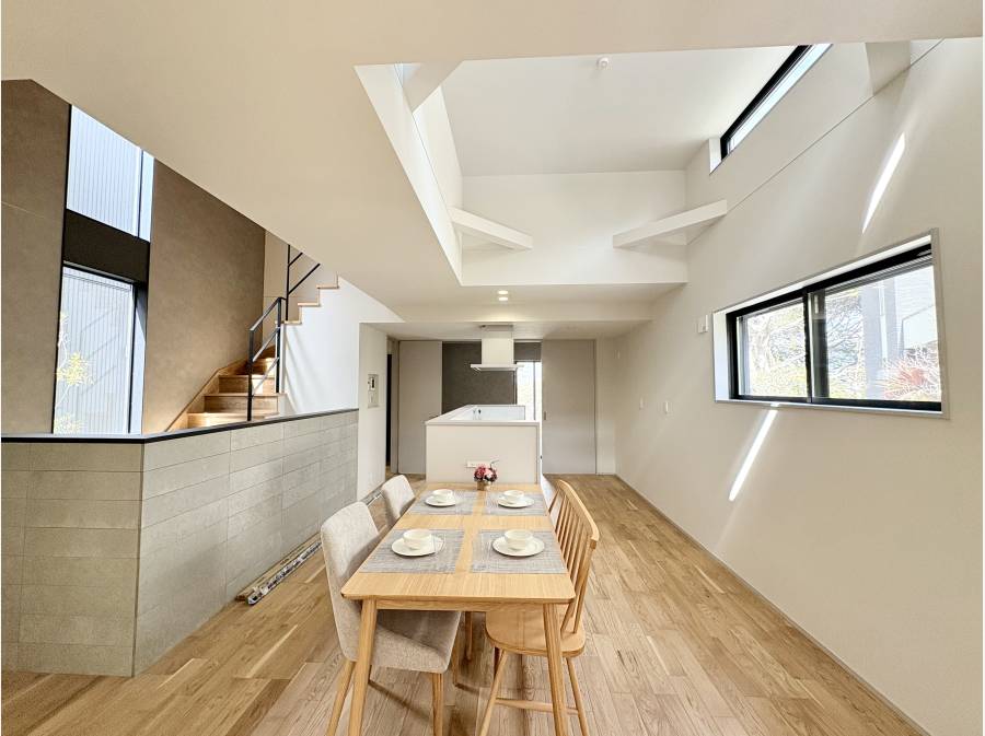 LDKは20帖広々とした空間が広がり吹き抜けと折り上げ天井が空間を開放的に演出します。