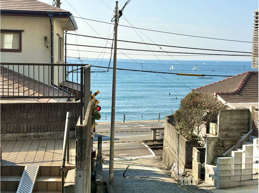 南側の隣接地を1軒挟んだ先には、腰越の海が広がります。