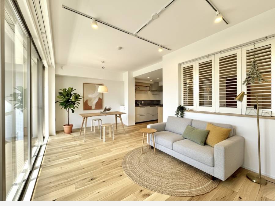 材木座の穏やかな空気に包まれた、フルリノベーション2LDK。白と木目を基調にした室内は、光がまっすぐ入り、どこにいても心地よさが続きます。広いLDKは家具の配置がしやすく、窓辺で読書をしたり、ダイニングでゆっくり朝食をとったり。海までは徒歩約5分。朝の散歩や夕暮れの浜辺が、特別ではなく“日常”になる立地です。鎌倉らしい街並みと海辺の時間、どちらも楽しめる住まいです。