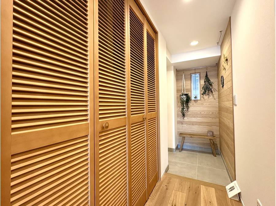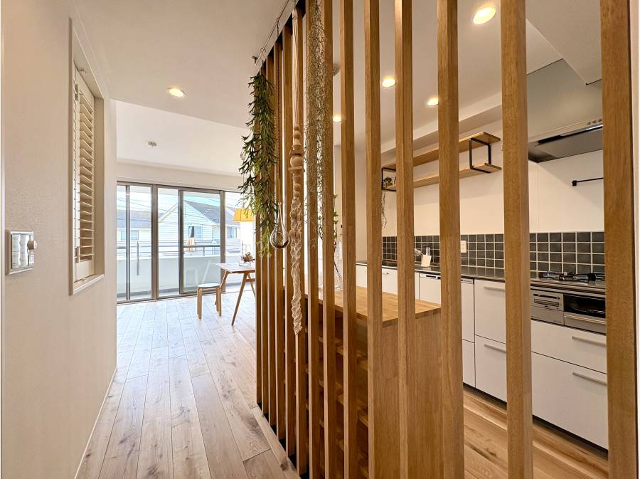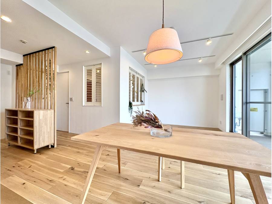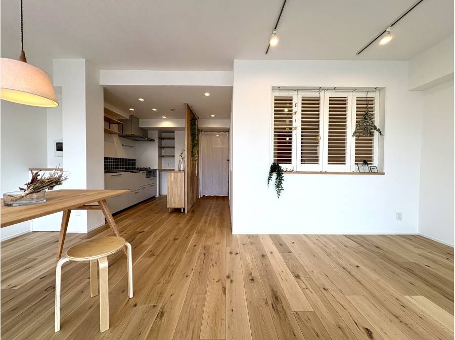 室内は「リラックスした住まい」をコンセプトに、オークフローリングやルーバー収納建具など、天然素材をふんだんに使用して全面的に刷新されています。