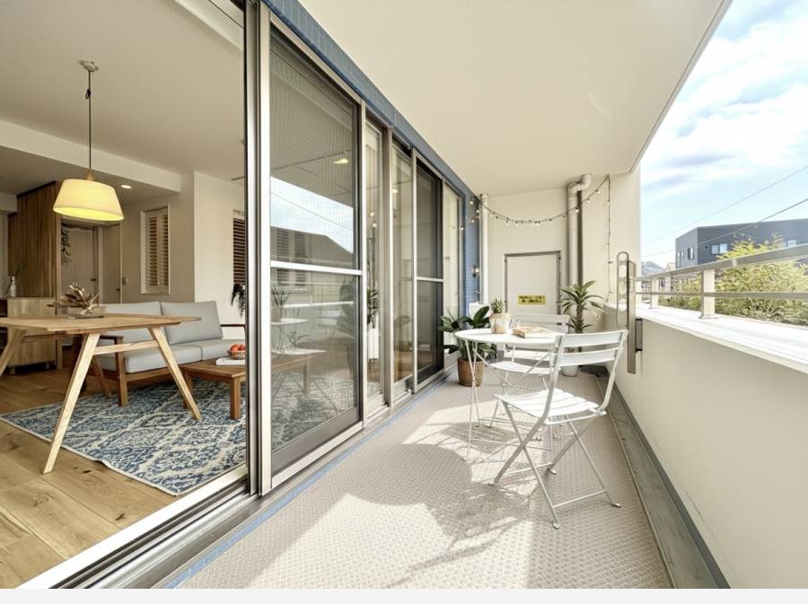 奥行2mのゆったりとしたバルコニーにはスロップシンクが設置されており、マリンスポーツの道具のお手入れやガーデニングにも重宝します。