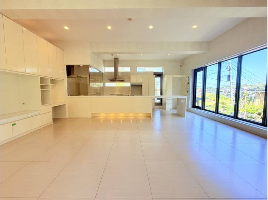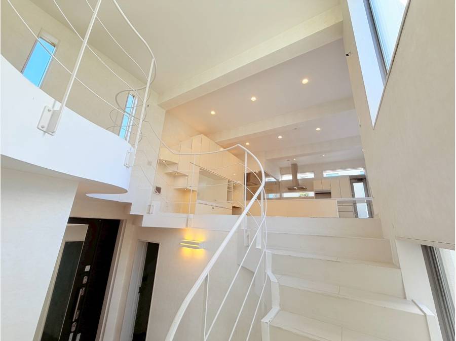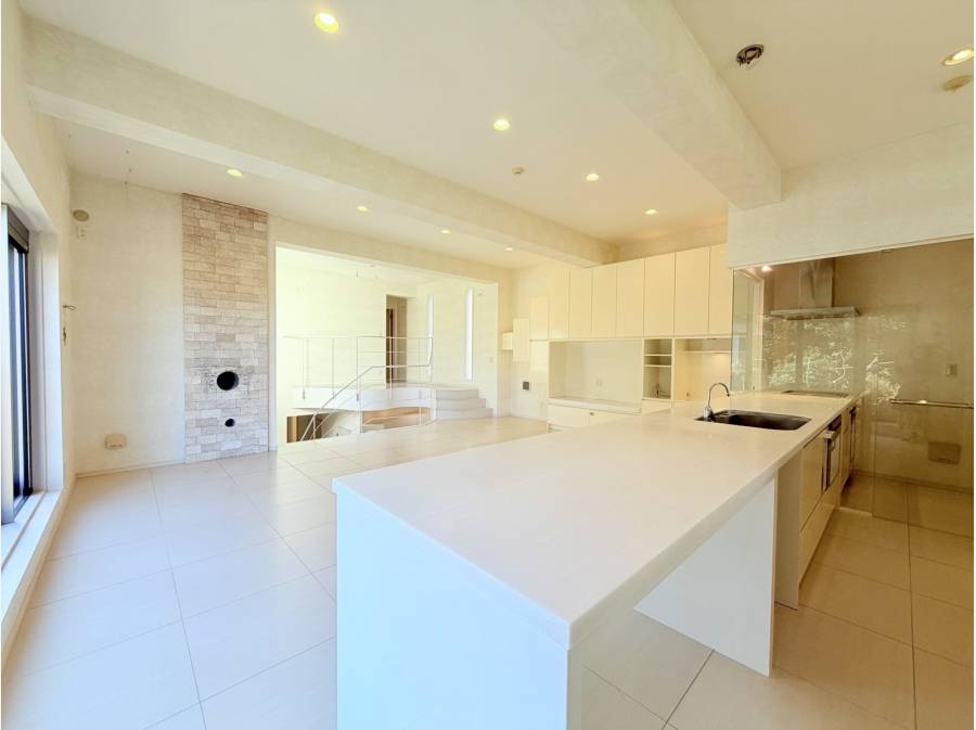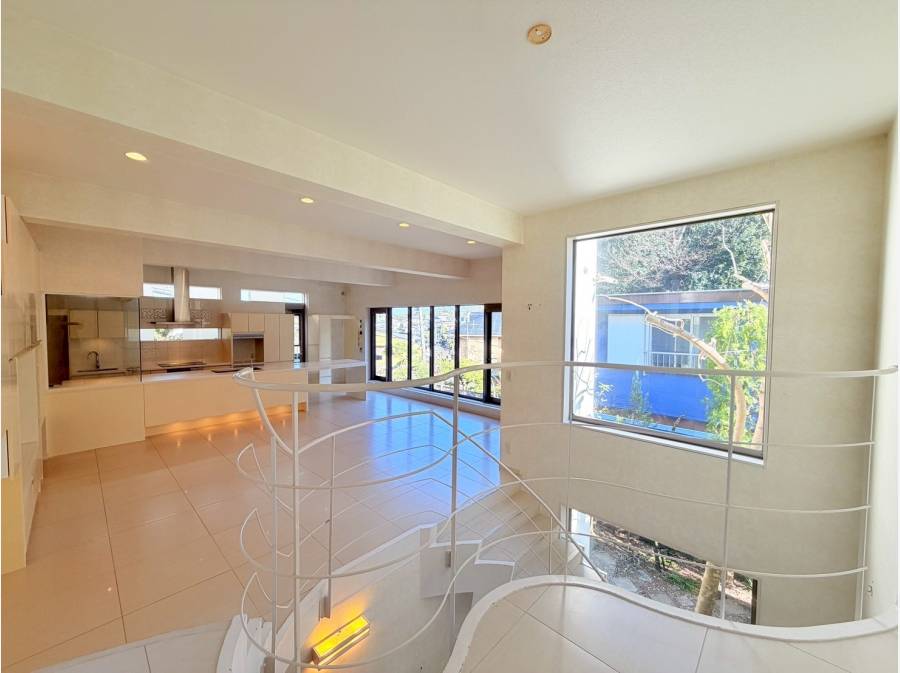 ビルトインガレージ付きの鎌倉の一邸。曲線美が魅力の階段を上がると、約30帖の広々としたLDKが広がります。家族や友人との優雅なひと時を楽しみながら、趣味や鎌倉の暮らしを満喫できる住まいです。