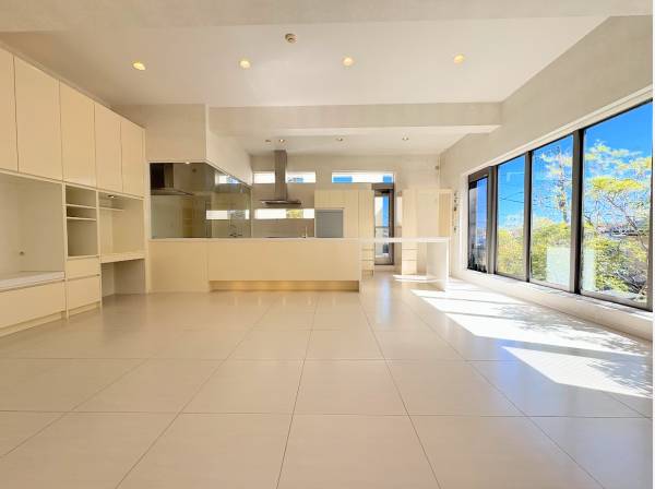 室内には、床暖房を備えた約30帖の広々としたLDKがあり、暮らしに開放感を演出します。ワイドバルコニーからの光と風が心地よく、日常にゆとりを与えてくれるでしょう。デザイン性と機能性を兼ね備えた、この魅力あふれる邸宅をぜひご覧ください。