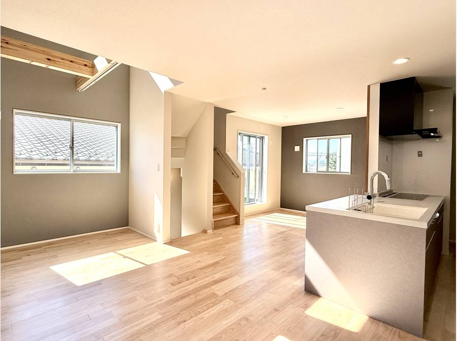 吹き抜けの天井が開放感を生み出し、断熱等級5の仕様で、一年中快適な住み心地を提供します。