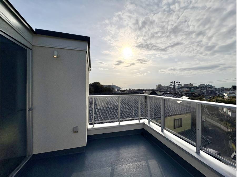 腰越駅から徒歩2分。江の島や富士山、相模湾を望むルーフバルコニーと、本桜無垢材の心地よい吹抜リビングが魅力の家。
