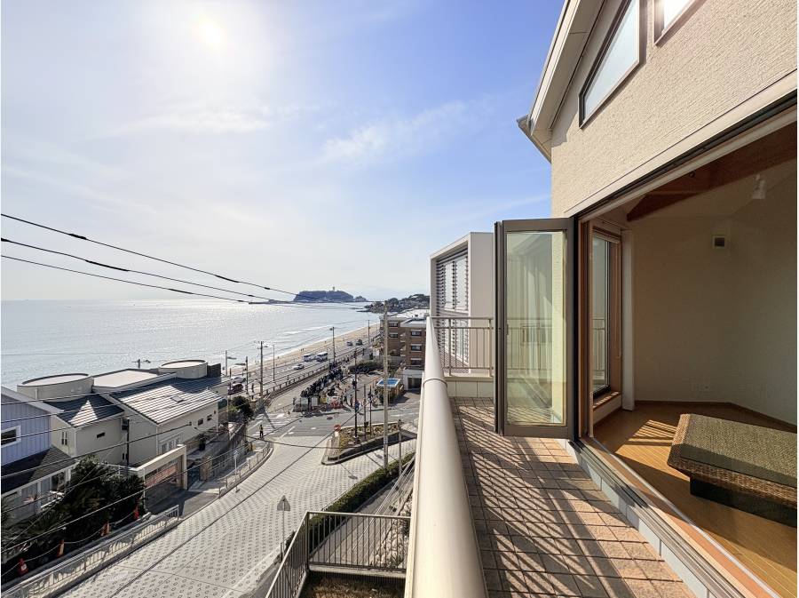 駅徒歩2分、海徒歩1分。屋上からは海や江ノ島、富士山を楽しめる七里ヶ浜の家。