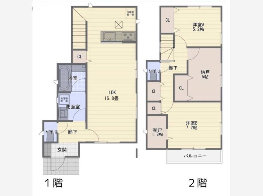 | 間取り | 2LDK + 納戸(5.0帖)+ウォークインクローゼット 間取り・区画図を取り寄せる | 構造・階建て | 木造 地上2階 |