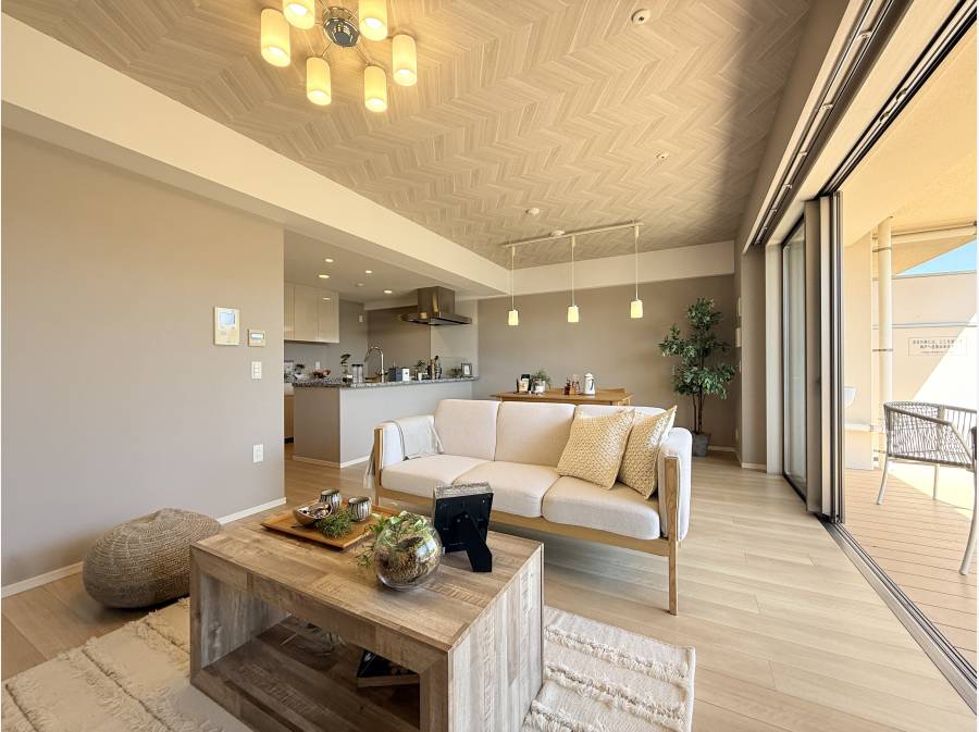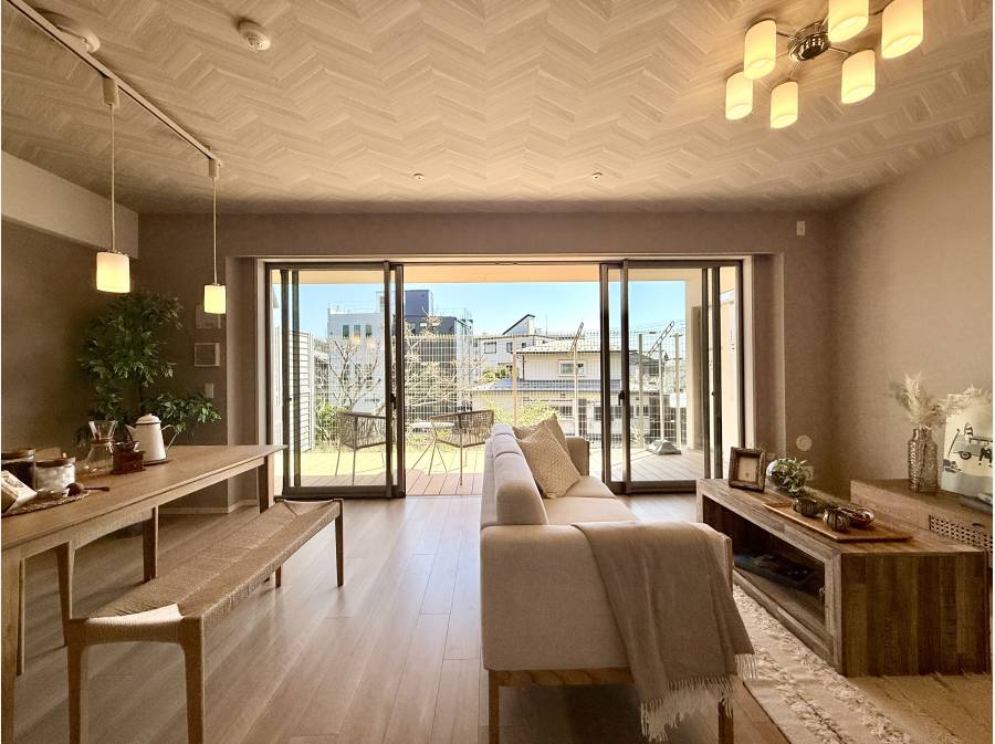 リビングに隣接するウッドテラスでは、柔らかな陽光を感じながら読書やティータイムを楽しむことができます。外とのつながりが、心地よい開放感とゆとりをお部屋にもたらします。