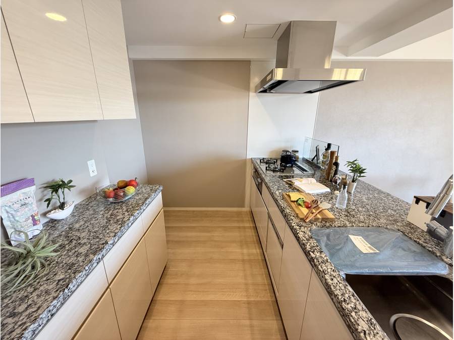 家族との会話を大切にする対面キッチンが中心となる設計で、パントリーやウォークインクローゼットも備えています。さらに、食洗機や浴室乾燥機など家事をサポートする設備も整い、快適な暮らしを実現します。
