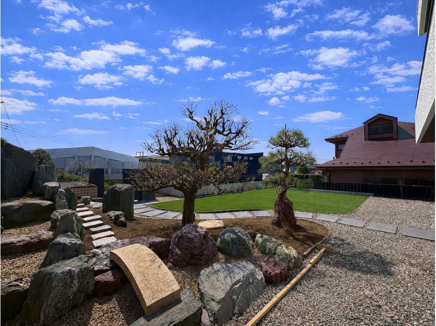 広々としたお庭では、家族や仲間と過ごす時間が自然と増え、季節の移ろいを身近に感じる暮らしが叶います。さらにルーフバルコニーからは、空の広がりを感じながら、心地よい開放感に包まれる特別なひとときを。