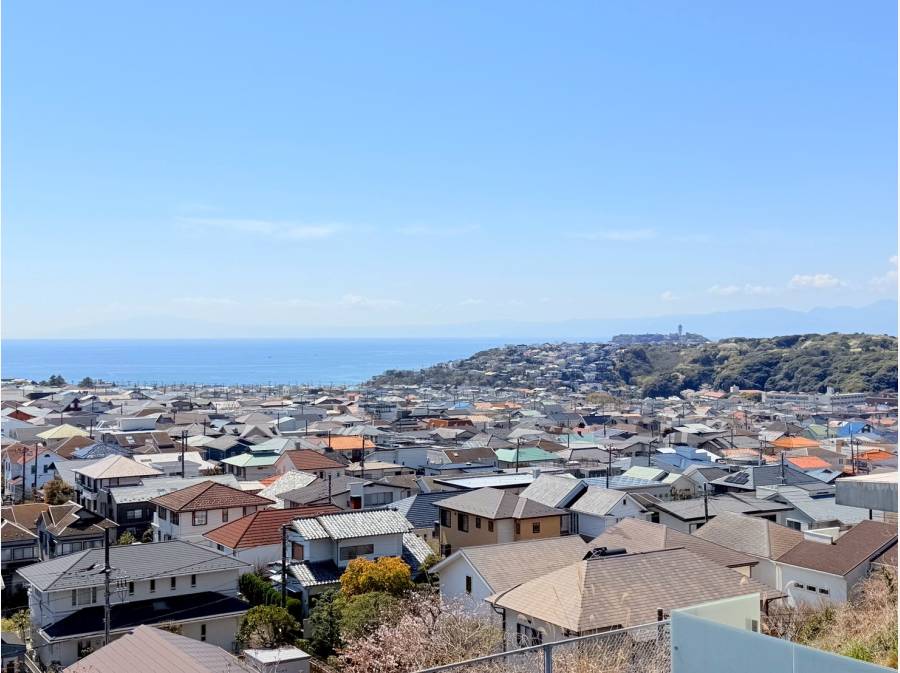 朝、カーテンを開けると広がる青い海。そんな理想の暮らしを叶える七里ガ浜の高台に位置する、3方道路の角地のご紹介です。
