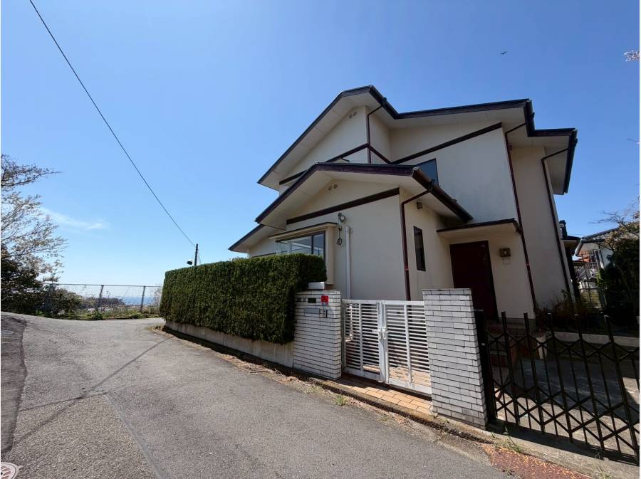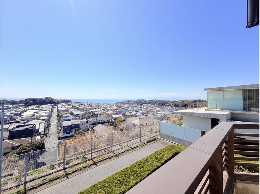 3方道路に囲まれたプライベートな土地で、三浦半島から伊豆半島まで相模湾を一望できます。