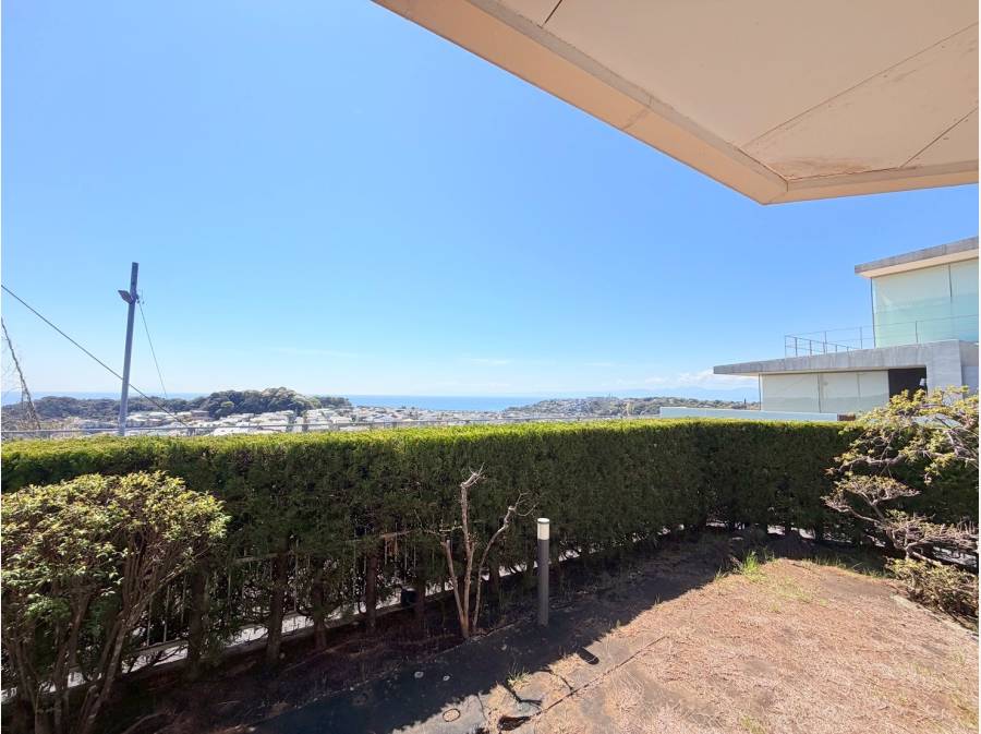 1階部分から広がるのは、視界を遮るものがない壮大なオーシャンビュー。三浦半島から伊豆半島まで、相模湾と江ノ島を一望できるロケーションは、このエリアならではの贅沢さです。