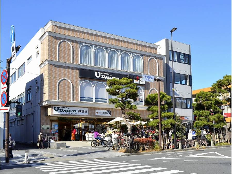 駅の方へ向かうと、スーパーはもちろんお洒落なカフェやレストランなどがあり、観光地としての鎌倉から日々のお買い物まで快適に利用できます。