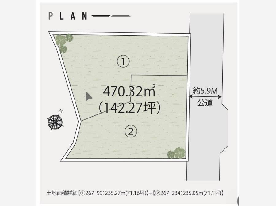 | 土地面積 | 470.32m² (142.27坪) 間取り・区画図を取り寄せる | 権利形態 | 所有権 |