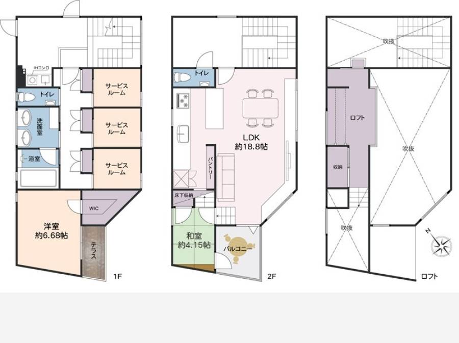 | 間取り | 2LDK + 3サービスルーム+ロフト+ウォークインクローゼット+パントリー 間取り・区画図を取り寄せる | 構造・階建て | 木造 地上2階 |