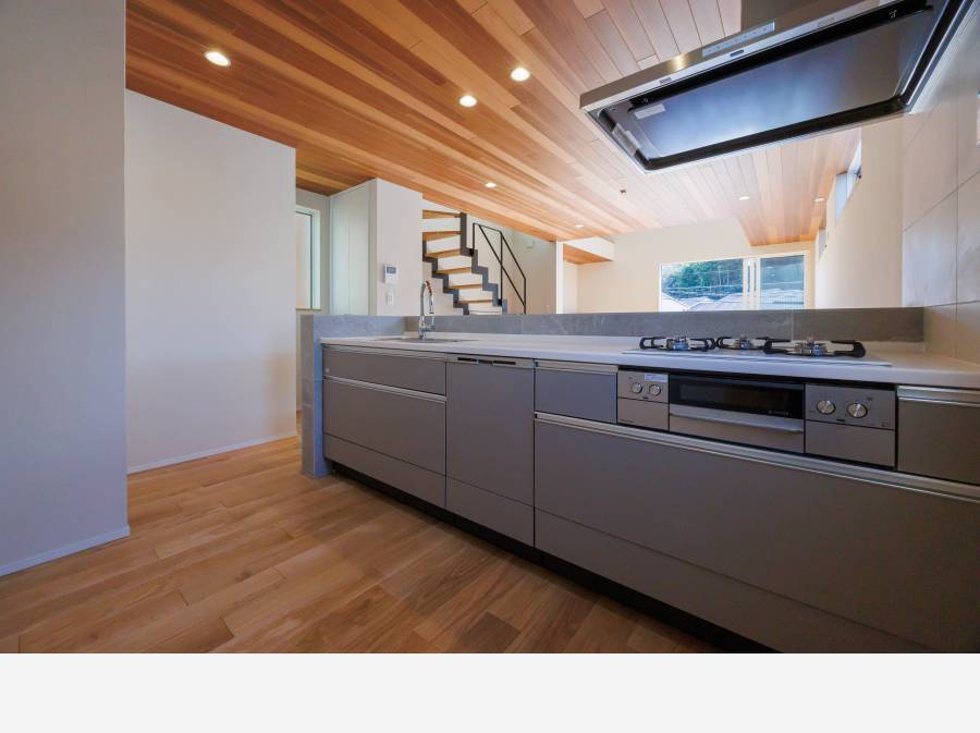 天井や外壁にあしらわれた木の質感が、日常にぬくもりと落ち着きをもたらし、湘南らしい軽やかな空気感を演出。