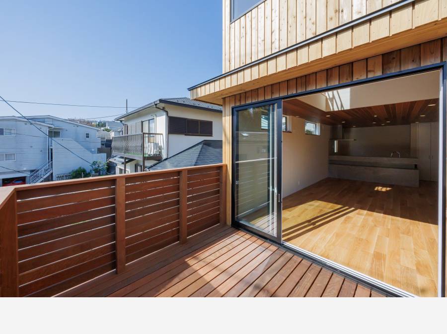 七里ガ浜駅徒歩8分。ウッドデッキへとつながる大空間。木の温もりと開放感を感じるデザイナーズハウス。