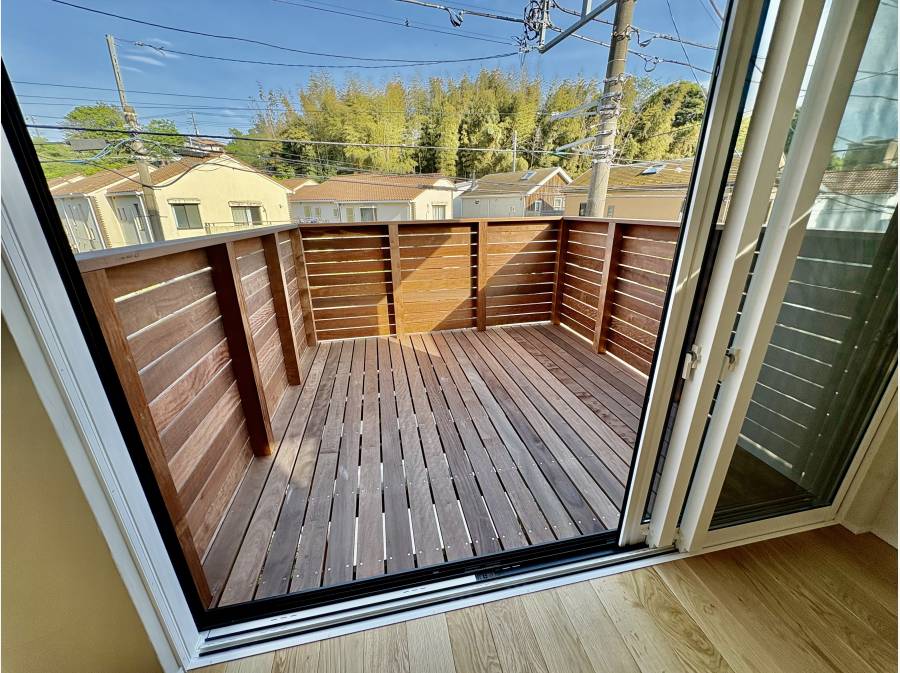 大きなバルコニーが特徴的で、窓を開ければ、