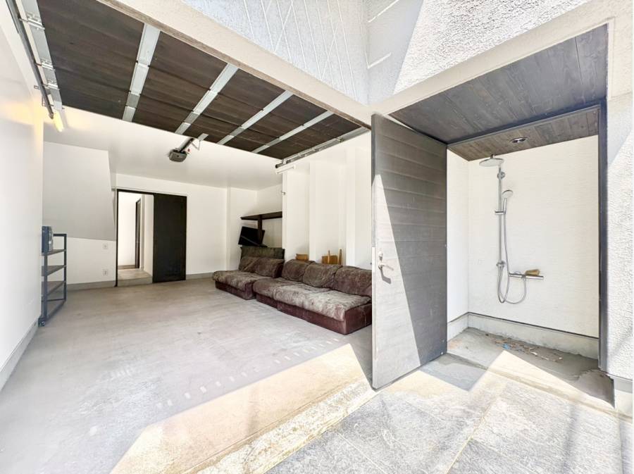 愛車を守る電動シャッター付きガレージや外シャワーも完備されております。