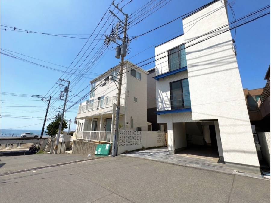 海まで徒歩1分の魅力あふれるシーサイドハウス!電動シャッター付きガレージや外シャワーも設置。鎌倉駅から徒歩22分の立地です。