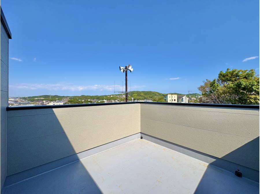 鎌倉市台の静かな街並みで、スカイバルコニーから鎌倉の自然や山の稜線を満喫できる住環境。