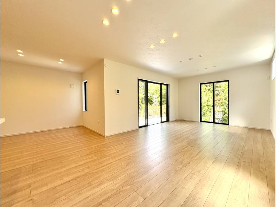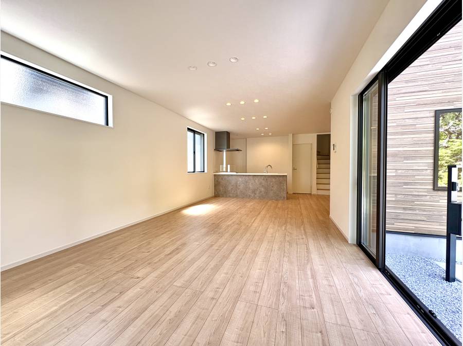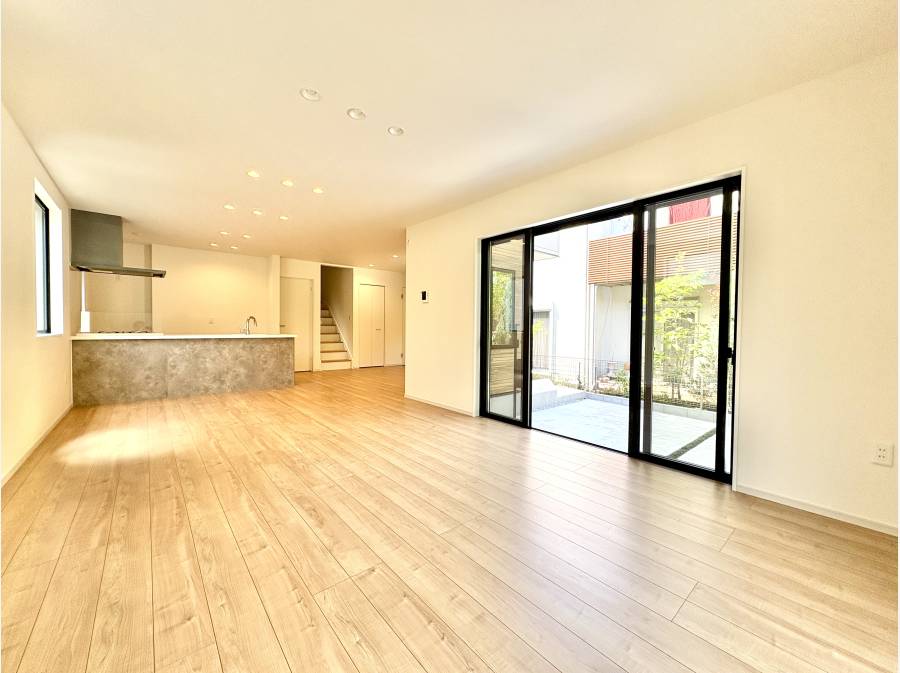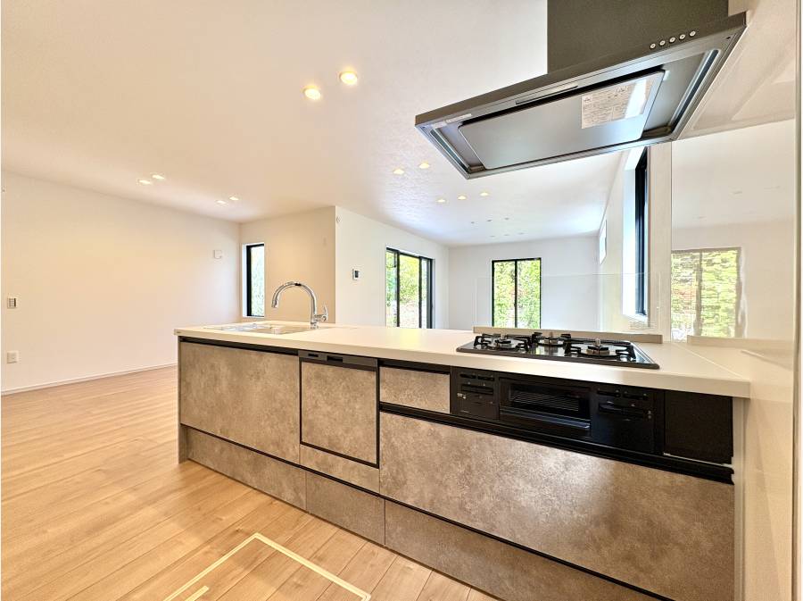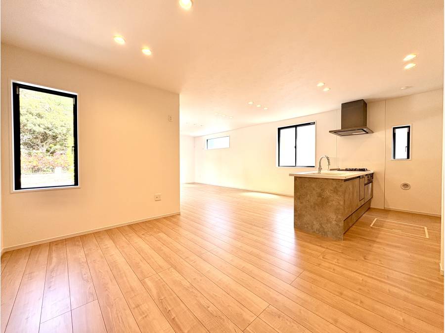 特徴的なのは、家族が自然と集まる約20.2帖の広々としたLDKです。さらに、約3.9帖のスペースが隣接しており、広がりをより感じられる設計になっています。キッチンは対面式で、料理をしながら家族の様子を見守れる温かな空間を演出します。